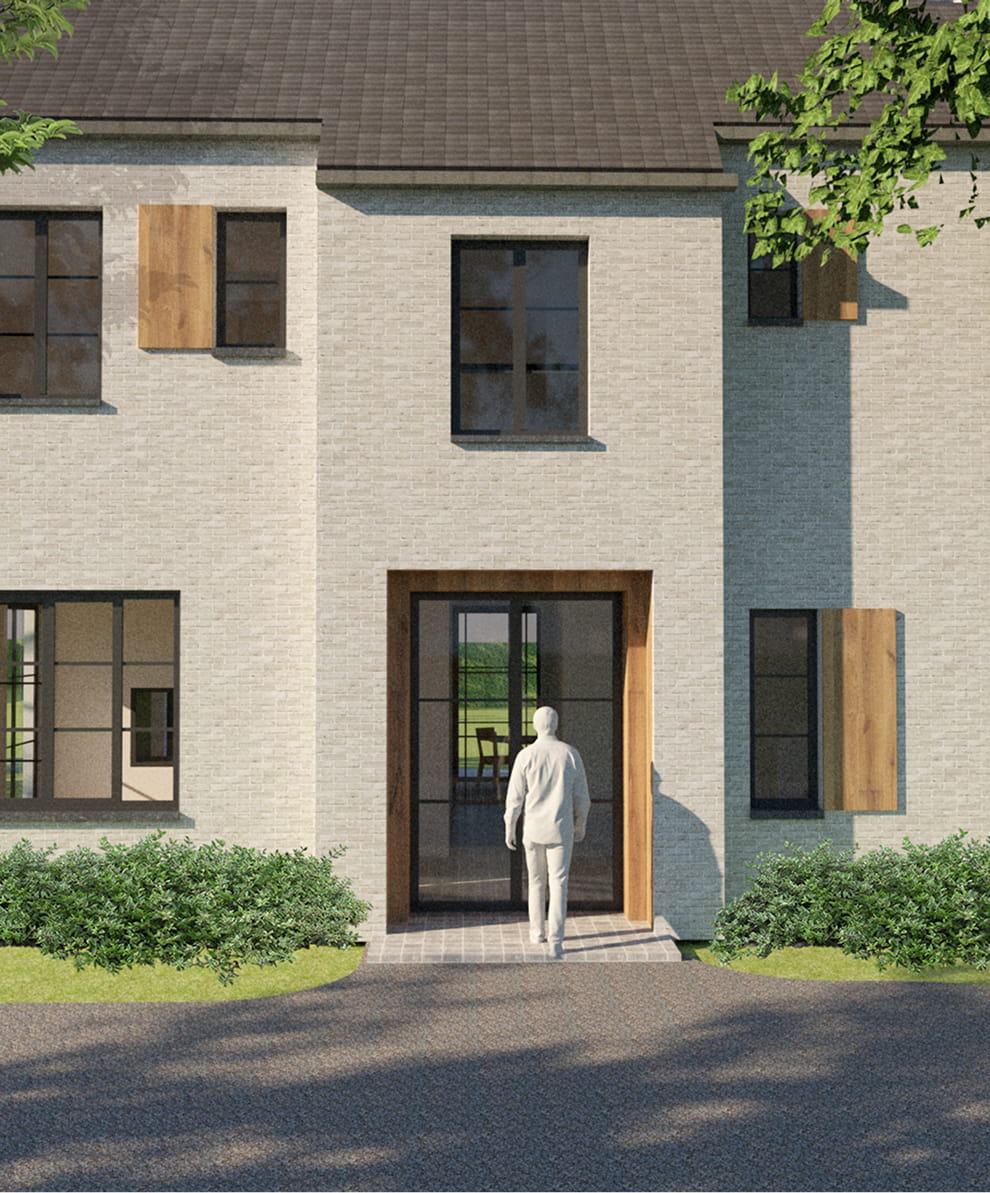 Wensen: woning die familiaal en warm aanvoelt; scheiding dag- en nachtgedeelte; logisch verbonden ruimtes; voldoende opbergruimte; vier slaapkamers; twee badkamers; grote lichtrijke leefruimte; centrale keuken met zicht op de tuin; aangenaam in zomer en winter; behoud sixties-elementen; energiezuinige woning; kelder mee geïntegreerd.